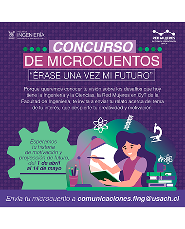 Si eres alumna de la Facultad de Ingeniería, Facultad de Ciencias y Facultad Tecnológica, envía tu historia, en no más de 100 palabras, al mail comunicaciones.fing@usach.cl, con tu nombre, carrera y facultad a la que perteneces.